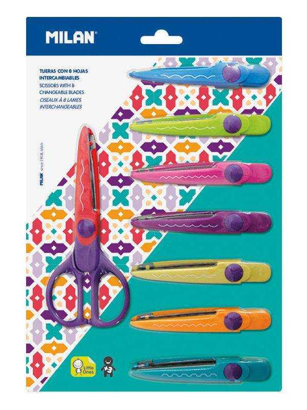 Blister pack zig-zag scissors with 8 interchangeable blades