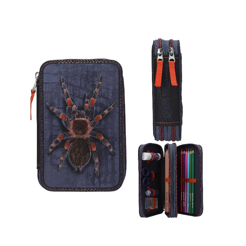Wow, spider! This dark blue pencil case from Adventure World features a large, slightly raised tarantula motif with a 3D effect on the front.