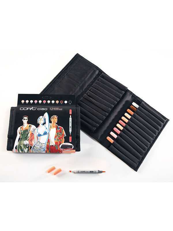 The COPIC ciao skin color set is also available in a handy wallet. Ideal to carry your marker as well as a clean structure. With Velcro closure and Insertion facility for up to 24 markers. With outside pocket and zipper. A set in the wallet is also a wonderful gift idea.