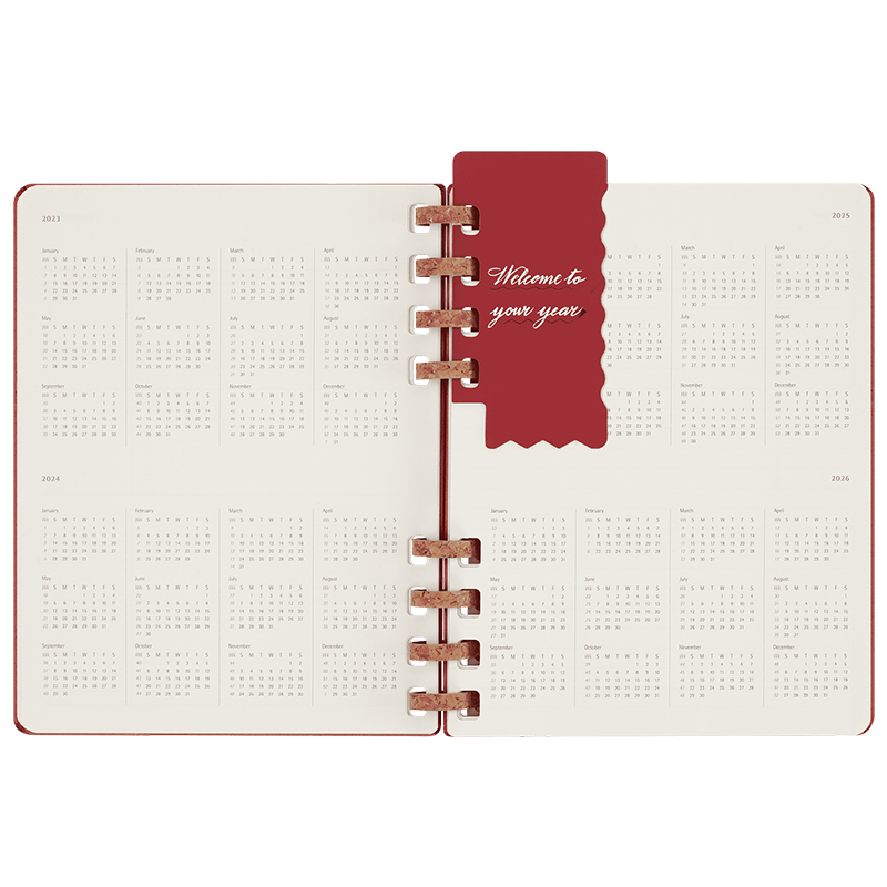 - Useful tools: calendar, travel planning, ideas and goals, ruled pages for notes