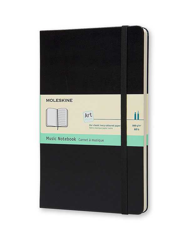The Moleskine large Music notebook is ideal for musicians, sound designers and song writers. It has the left page blank and the pentagram on the right, perfect for jotting down harmonies, melodies and musical ideas. It includes besides a music ruler.