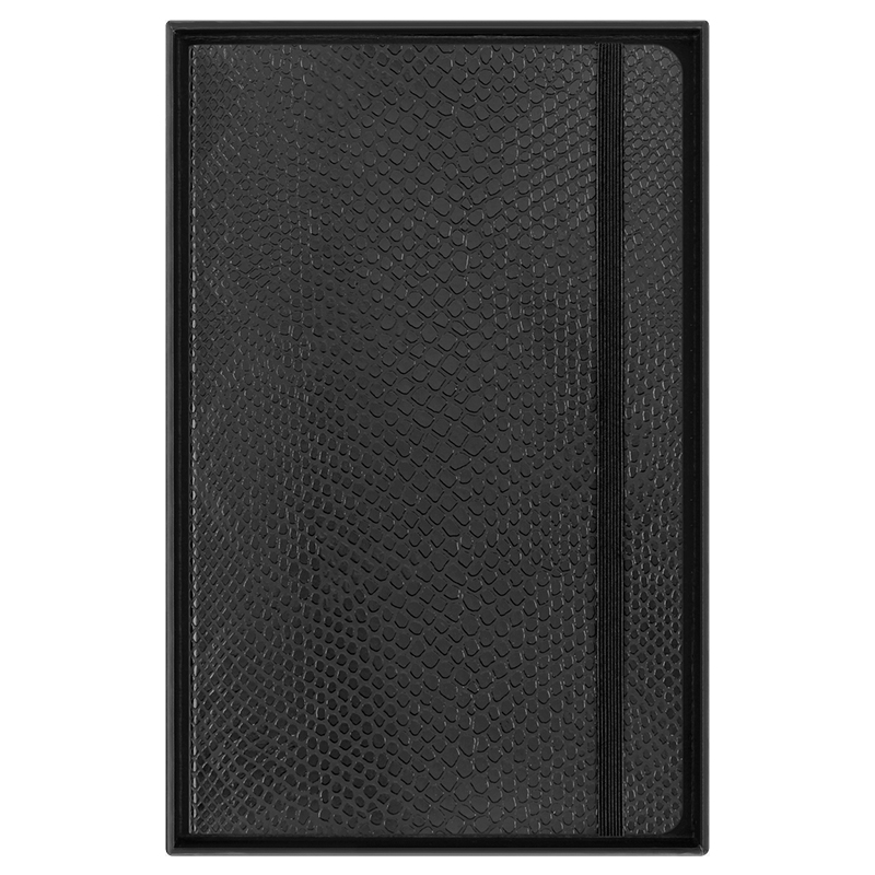 Discover a luxurious notebook, hand-bound and with exceptional attention to detail in both design and craftsmanship. Its tactile vegan cover is created by VEGEA®, an innovative company that converts organic waste from the Italian wine industry into new materials. From vineyard to notebook: the python-effect cover adds a naturally wild feel to your notes.