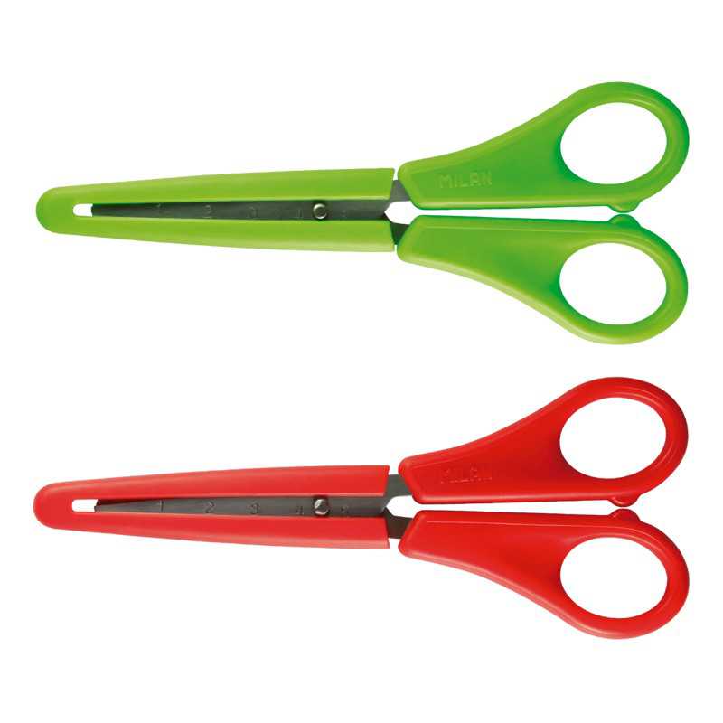 Մկրատ բռնակին համապատասխանող պատյանով։ Մետաղական շեղբ՝ բութ ծայրով և 5 սմ քանոնով։ Իդեալական է դպրոցի օգտագործման համար։