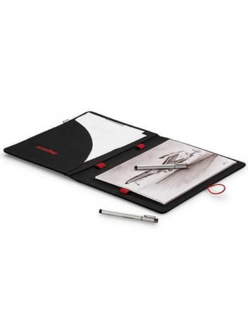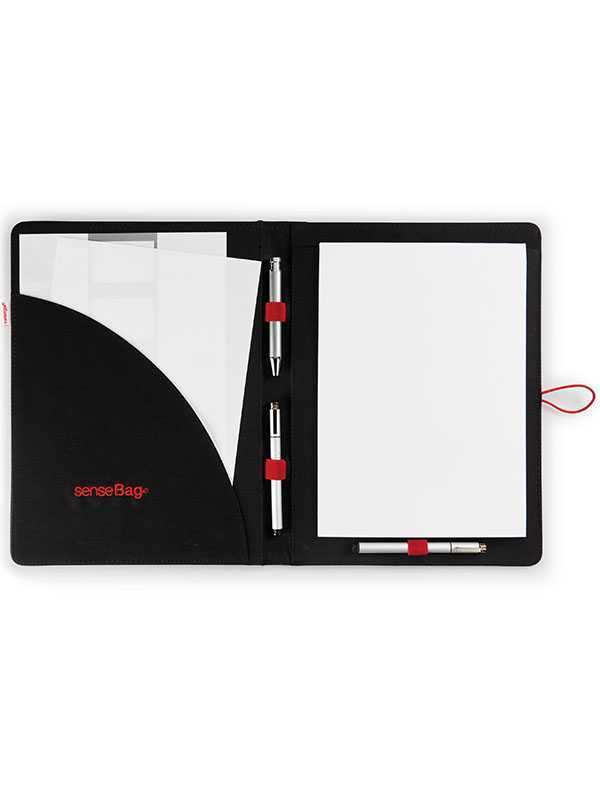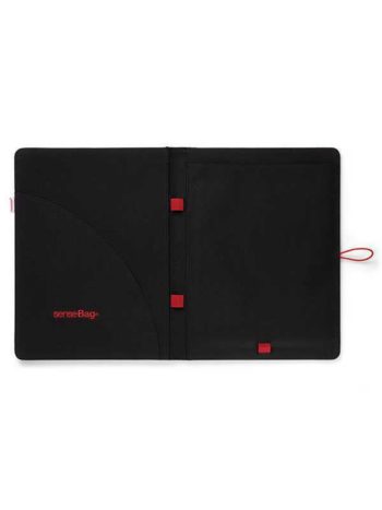 - With the red loop and the sewed on button, you can safely lock your writing & drawing folder
