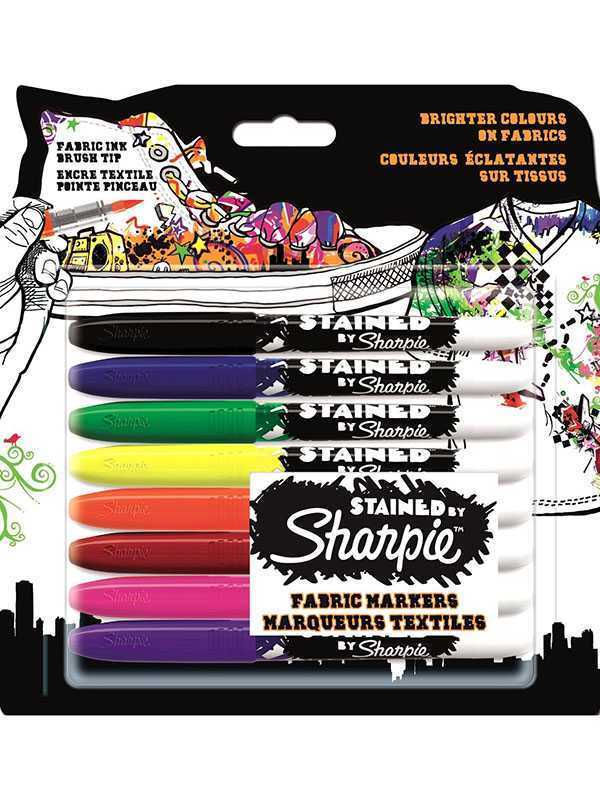 Stained by Sharpie™ features ink that’s specially designed to adhere to a wide variety of fabric surfaces. They have a brush tip that draws both thick and thin lines and vivid ink that resists fading during normal wash cycles. Make your clothing truly original with Stained by Sharpie™.
