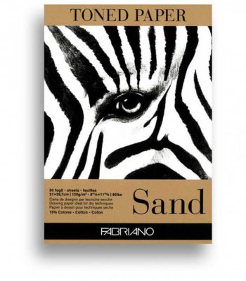 Fabriano Toned paper is ideal for sketching and drawing that emphasizes on shading and highlighting techniques. Its cotton content (15%) gives to the paper softness and strength. The smooth natural surface is particularly suitable for all dry techniques such as pencil, charcoal, crayon, colored or ink pencils, gel pens and water based markers. Available in two colors: Sand and Clay.