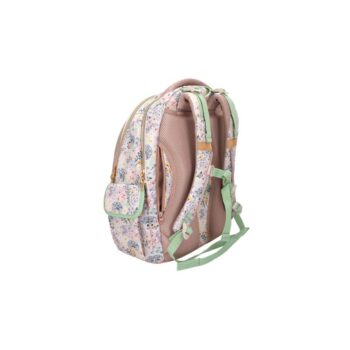 The TOPModel school rucksack has a romantic model motif on the front, a pattern of delicate flowers and butterflies in pastel shades all around and sage-coloured details. Great extras: the cute flower pendant on the zip and the ring for attaching additional pendants.